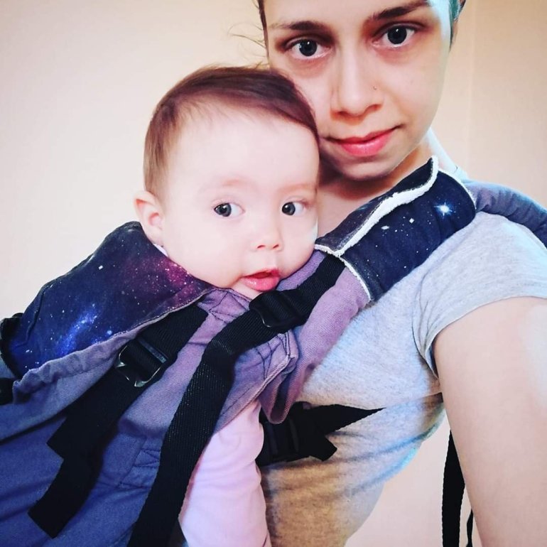 The best thing about carriers you order from Schneider’s is that you can (generally) be able to choose senseless 😀 do you want carrier of entire woven wrap, or just the panel from it, whether it will have a hood and what kind of, will it adjust in the height of the panel, width … of course, that all affects the price, but hey – you get carrier on your wish ❤️ But keep in mind that as more and more precise the carrier can be adjusted, you will need more time to install it for the first time – and every next time it is worn by someone else. I had to write this introduction to explain my impression, and it is: This is a great carrier – once you set it right. It is comfortable, shoulder straps and belts are thick enough to carry more weight, but not immensely huge. It is high quality and I’m sure it can “push out” at least two toddlers “from-to”. Do not be afraid of the mentioned setup. It does not mean that it’s complicated to use, but if something stirs you, it means you have to adjust the straps differently. Get started from the baby settings (panel height, width), then grab the shoulder straps by themselves. Then when you install it will be your best friend in a walk.