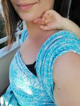 Thanks to Lenine putujuce nosiljke i marame (Lena’s traveling carriers and wraps), we had an opportunity to test Chardan slings Celestial sky in size 6, which is my base size. My wrapee is an almost 2 yo, she weights 12kg and we tried this wrap in fwcc, reinforced fwcc with a shoulder flip, double hammock and ruck. I love wraps with geometric design, cause they tend to have nice grip and feel comfortable on shoulders, but this wrap brought a whole another dimension when it comes to how it felt on shoulders! I didn’t feel my lo’s 12 kilos at all!!! It’s really mouldable, with a nice grip to glide ratio, does have quite amount of diagonal stretch, which requires better tightening, but it doesn’t make a sloppy wrap job uncomfortable! I would say this is one wrap that can take you from the beginning to the end of your bw journey, suitable for all levels of experience. I’m really thankful I had a chance to try this wrap and I would recommend it to anyone who wants a nice, easy care wrap! P.S. I almost forgot to mention that my 4-year-old daughter was actually the first one who got wrapped and this was literally the only wrap in which her 16kilos weren’t too much for me!