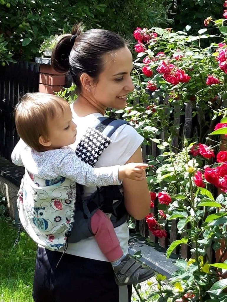 Baby and I tried this beautiful Bazzinga and we really enjoyed it. So far we have been wearing only in elastic wrap and we have no experience with these carriers. But we got on. I was thrilled with the fact that the carrier on all sides has some adjustments, clips and what everywhere there are holders that curl excess straps. Now, as there are already so many options for tightening, I almost always touch something out of it 😆 so that we did not even equally spell one day. Some day was better, some worse. Usually, both of us were comfortable even when we did not fit properly. The baby has 7.5 months and about 9kg.