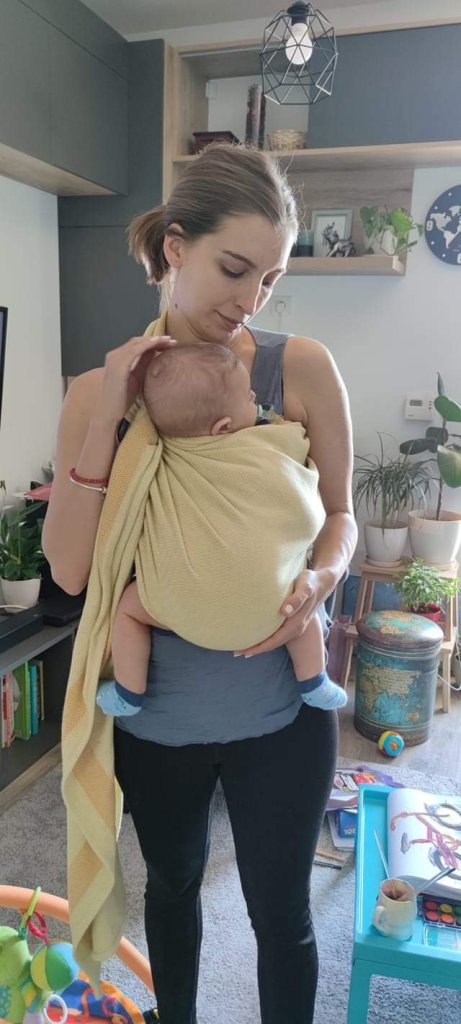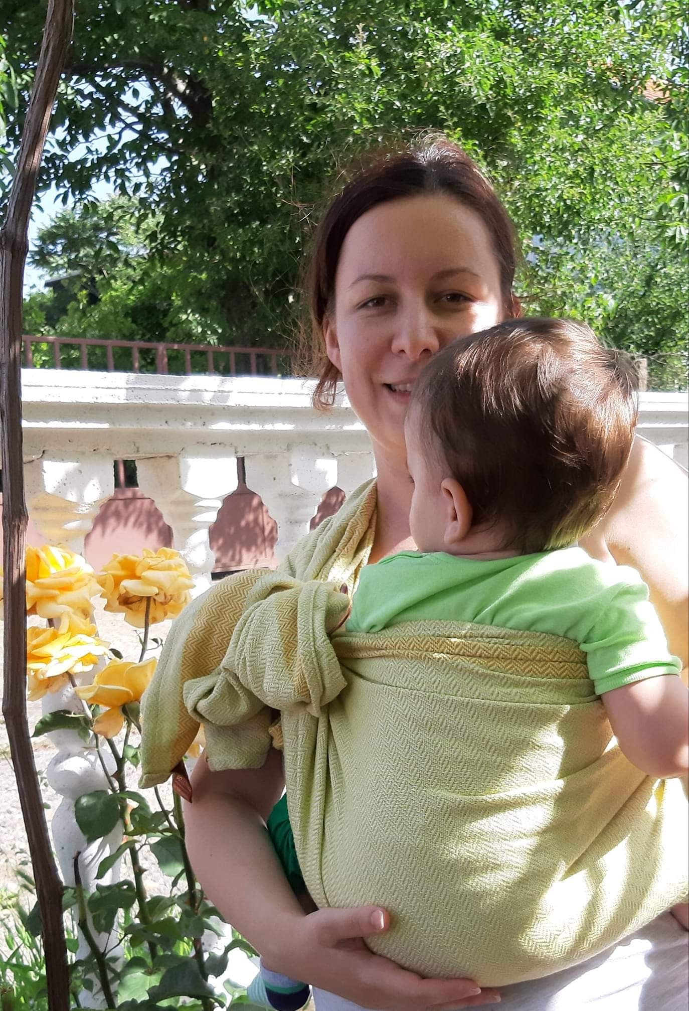 Thanks to Lenine putujuce nosiljke (Lena’s traveling carriers) my baby and I tested Bo sling. It surprised me that is so soft because it looked so rough and not so soft. It’s cotton, so it was very comfortable to wear it. The colors are amazing. Yellow, but green 💚 baby Tester is 7 months old and 7.5 kg. We loved it so much