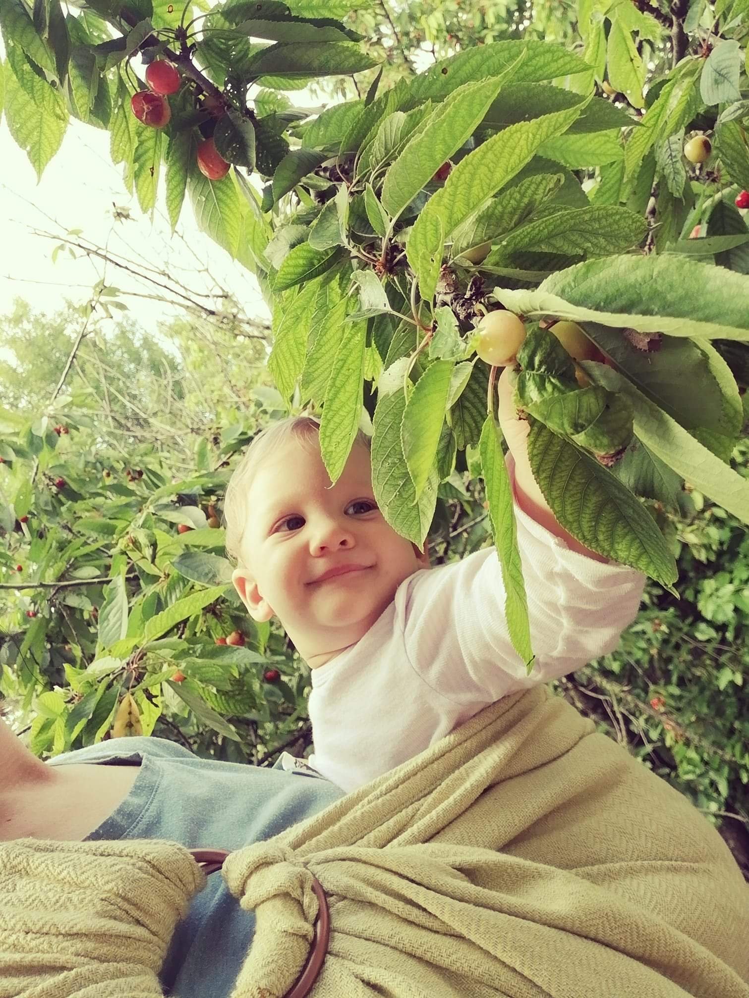 Thanks to Lenine putujuce nosiljke i marame (Lena’s traveling carriers and wraps) we had an honour and opportunity to get to know Bo slings brand and this nice, green, Amelia sling. I like its colour, it is light and changes from yellow to green, depending on the light. It is perfect for spring. It is thin enough, strong enough and slides easily through the rings. It is very soft and breathable. All in all, I really liked this sling, as well as my baby (1yo, not nore than 10 kgs), so we went to our cherry orchard with it and used it for sleeping. Thanks again for this lovely opportunity!