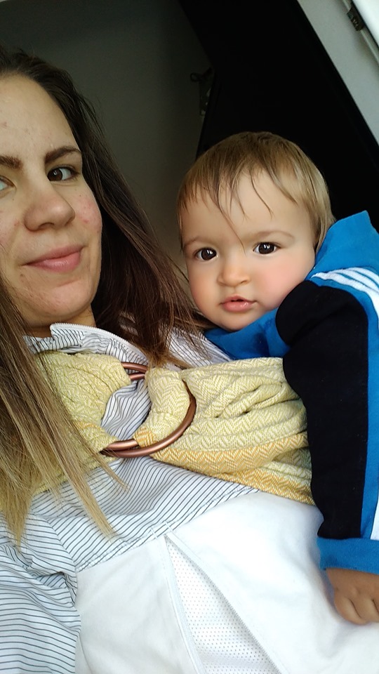 Thanks to Lenine putujuce nosiljke i marame (Lena’s traveling carriers and wraps) and Bô Slings we had the opportunity to test this lovely ring sling D. Amelia. I liked that it is soft but strong so I didn’t feel the baby’s weight. He’s almost 11 months and round 10kg. It’s a bit thicker so it was hard to tighten sometimes but practice makes perfect. Overall we had a great time with it.