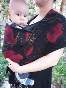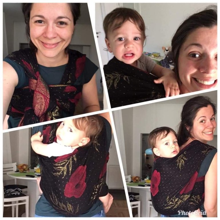 thanks to Lenine putujuce nosiljke (Lena’s traveling carriers) and roar i had a chance to try out Conquelcitos Bouquet d’or 5 size. It was my first encounter with a woven wrap and it was wamazing. The wrap design is elegant and just what every mom needs while wrapping up to feel put on. For me it was love at first wrapping. The son is 5 months and about 7 pounds and I haven’t felt it at all. With the sling and ssc I reached for the wrap more and we really enjoyed as a wrap and as a blanket. It’s great for a beginner like me and I don’t think you can go wrong buying a wrap as it can be worn from birth to the end of babywearing.