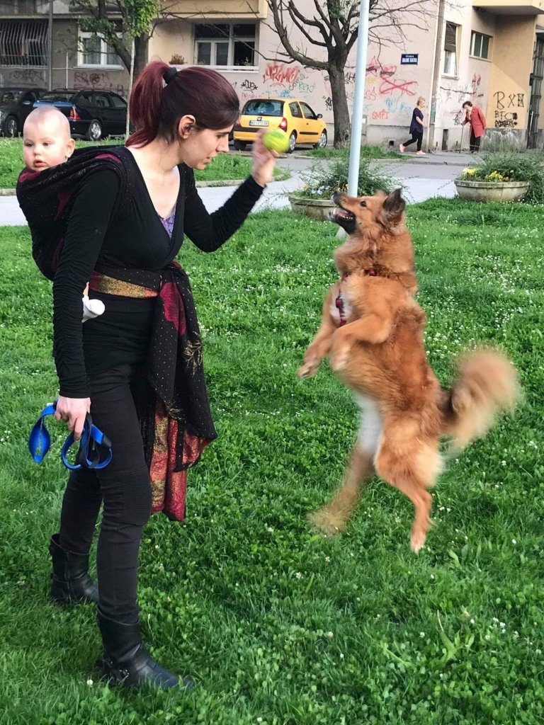 My girl has 5.5 months, 6.5 kg and she is 66 cm long. The first thing that inspired me was the design and quality of the wrap itself. The feeling in your hand is incredible. The wrap is very easy to tide in more ways. At the same time, you have the feeling of strength and softness. A completely secure node that is not moving. We also enjoyed a long walk. I think that a little time that is need to tide it, is absolutely worth the pleasure. Thanks Lenine putujuce nosiljke i marame (Lena’s traveling carriers and wraps) for the opportunity to try it!