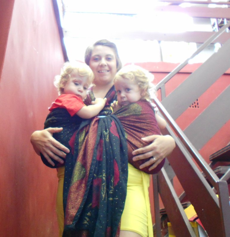 We had a chance to test beautifull Roar coquelitious bouquet d*or (viscose). We tried it with several carrier style with my twins and a three year old son. With my three year old, gives nice support from knee to knee, but i am missing extra width for better support on his back. When wearing both my twins, gives nice support, holds everything in place. Very soft and moldable. I was worried that viscose will itch me alot or that wrap will slide down, but it holds nicely. In a ruck, in long walk, after some time, i felt little scratching and going loose, but when you see how beautifull it is, you forgive her everything. Looks amazing, it shines and i love it.