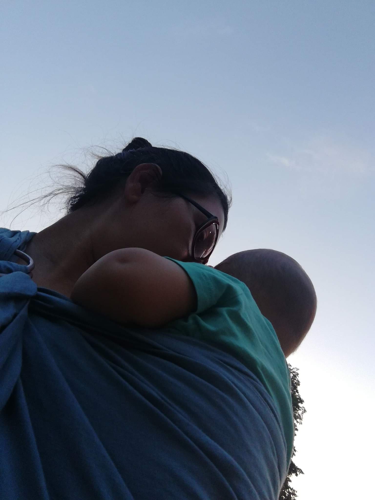 I am so happy we finally went for a walk in a ring sling, I feel much safer walking down the stairs when my baby is wrapped close to me. He enjoyed it and slept through the whole walk. He is now 1 month old and last time we checked 4.8 kg. 🙂 The material is really nice and light and it was pretty easy to adjust, but we still have to practice. I think we’ll have a great time using this rs. ☺️ #lenastravelingcarriers