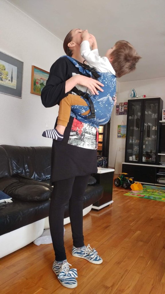 This is really just the perfect carrier for everyone, for small and big baby/child and for small and a big parent. At the moment of testing the baby is 11 months, 75cm and 9,6kg. (I’m 169cm and 55kg). The material is so thin, light and soft. I tried paralel straps as well as crossed but paralel one are just fine and comfortable. The waistband is padded and wide enough but not too much. The hood is detachable. Back carrying you don’t feel at all, light and soft as a feather. The only thing I didnt like was a short perod for testing π when it has so many ways of adjustement I need more time to perfectly adjust for myself, otherwise the mark is clear 10 and the carrier is definitely for recomendation. Thanks one more time for this unic opportunity π
