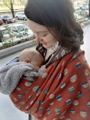 Thanks to Lena’s traveling carriers, my baby (4m, 5.5kg) and me enjoyed wearing this Avolve Crazy Dot Cobalt Pumpkin wrap! First impression with this wrap is warm and soft wool. For sure, this wrap is for colder days, and it was nice to combine with different covers due windy days. Thank you for this opportunity! 😊