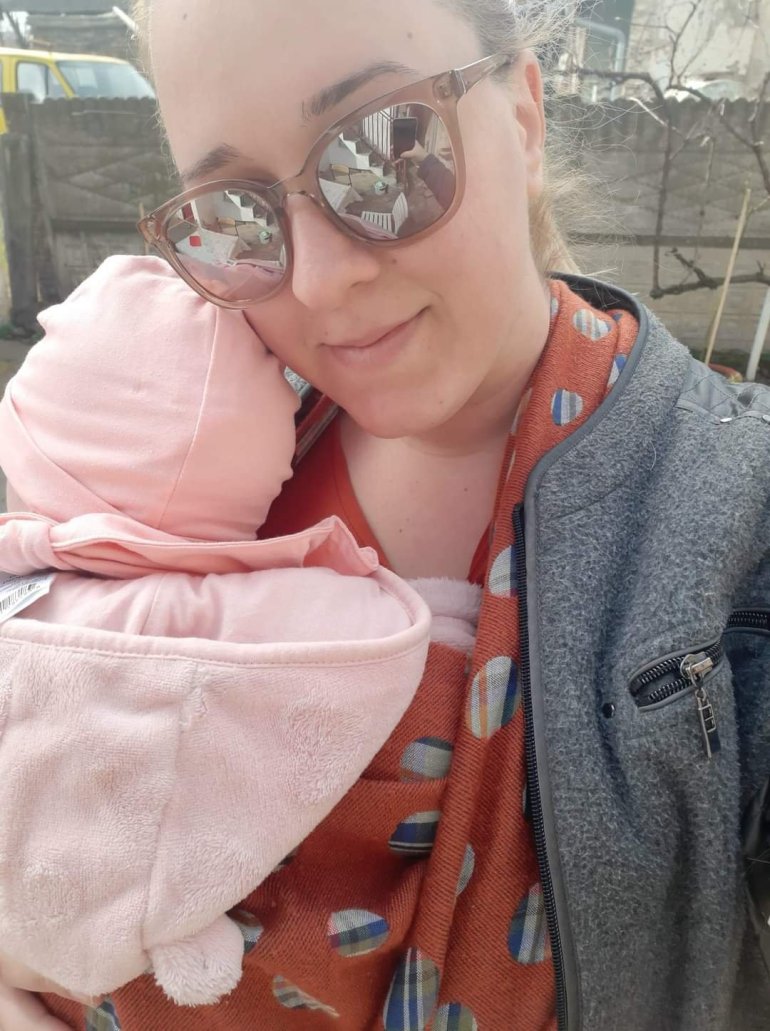 I have read that this wowen wrap is 330gms thick, but I really realized it when I took it. There is a big difference in thickness and weight compared with the 220gms wrap we have used now. The touch of wool on my bare skin reminded me of days I was playing folklor, and woven men’s pants. This wrap has a beautiful design, holds the baby great and I believe it is perfect for wearing a toddler. My baby is 3.5 months old and almost 6kg, so we still don’t need that much strength. Also, I think that carrying would be a lot more confortable in any other season with the temperatures under 20°C. Thanks to group Lena’s traveling carriers for giving us opportunity to test this great wrap.