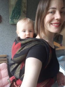 We had an opportunity to test Roar L amour chick in size 5,what is our base size. Colours are not my favourite ones but with nice black dress it can look really elegant. Wq are very good. I thought that gold part will be too grippy but it wasn’t. Wrap itself is soft, like all Roar wraps I tried so far. It is a bit thicker, but luckily, the weather here was cooler than usual so we could enjoy it. I didn’t feel 10kgs of my 1yo girl on my shoulders. I am glad that we tried it and proved theory that all Riar wraps are so soft and cushy. Thank you for this opportunity.