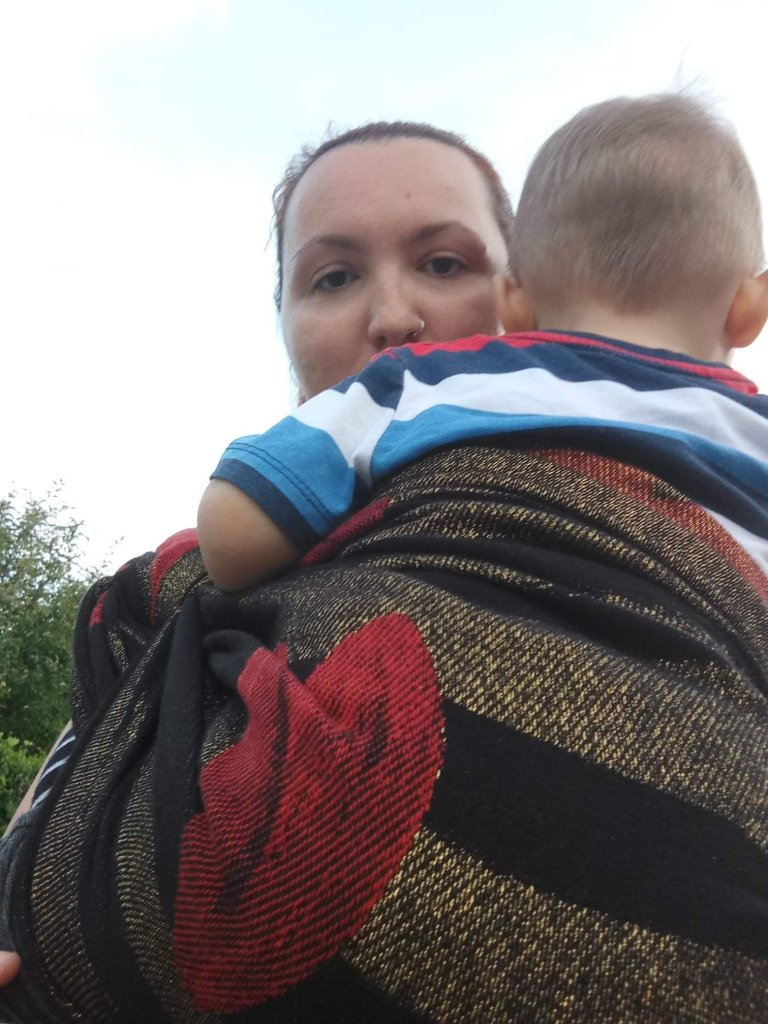 It is not completely broken in, so still needs some love, but even without being broken, it’s soft and moldable. This is thick wrap, and not really summery wrap, cause we were hot in it, cause the temperature was around 30°C.
