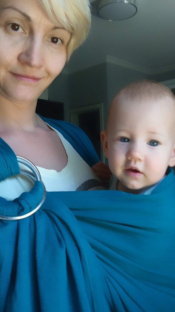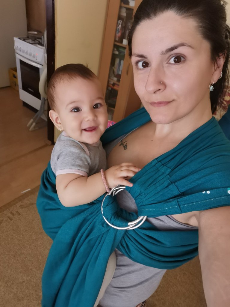 Thanks to #lenastravelingcarriers we had opportunity to test this ring sling. It was my first try with any ring sling and it was interesting experience. Fabric is so soft, but color is what attracted me, it’s absolutely beautiful!