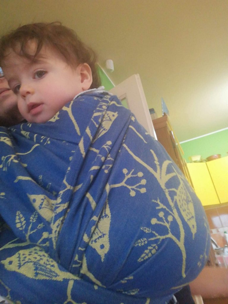 Thanks to Lenine putujuce nosiljke i marame (Lena’s traveling carriers and wraps) and Woven Bliss we had the pleasure of hosting Woven Bliss Lady Bird Sky Fall wrap and it’s a beautiful wrap. It is soft and firm when needed, baby’s weight of 10kg is evenly distributed. It was really comfortable. Colours of this wrap are so wonderful. We weren’t so brave like other moms π to try back carrying cause we are in a phase of jumping and tumbling so it was a chalenge to carry him even in front carry π. Maybe because of that, but I had some difficulty to tie it. Generally it is a great wrap and we liked it.