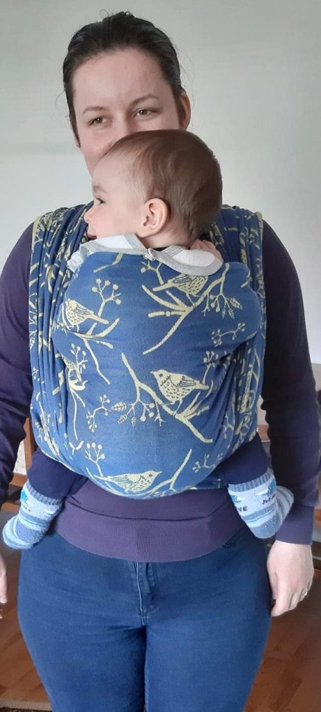 Thanks to #lenatravellingcarriers and #wovenbliss I had opportunity to try out this beauty all cotton. I am blown away with amazing design with small birds and combination of blue and yellow colour. It is really soft under hand which makes it easy to wrap and a real pleasure to explore different finishes. My son, Petar is 4months old and almost 8kg and wrap took over his weight so I felt light and he really enjoyed taking naps in the wrap. Thank you for making it possible for us to enjoy in this beauty of wrap.