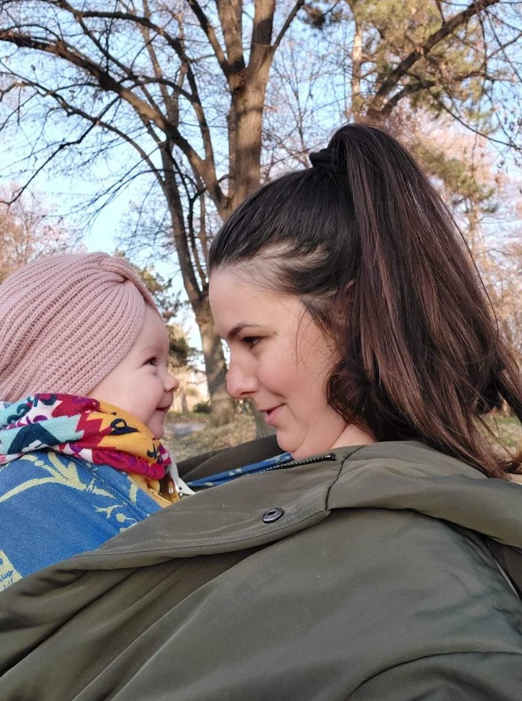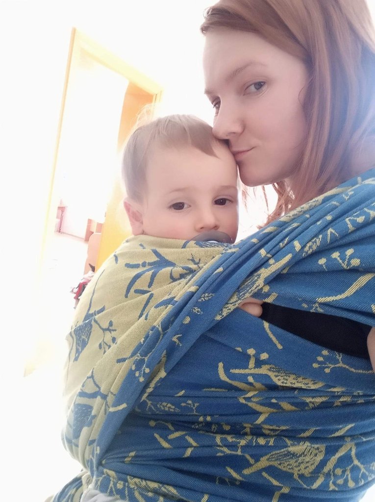 I had a chance to try Woven Bliss Lady Bird Sky Falls and the first thing I’d like to share with all of you is – it is as soft as a cloud. I am a newbie when it comes to woven wraps and this, in fact, is the first wrap I’ve tried. After this experience, it is certain I am not going to stop wrapping my one-and-a-half-year-old and 11 kg heavy little monster. π The wrap seemed a bit too long and difficult to handle at first (size 6), but after several attempts, it got easier and I started enjoying it even more. I used to carry my wee one on the front, sometimes for over 2 hours continuously, and I felt no weight on my shoulders. The colours and the pattern are also beautiful, especially the lovely green colour. I fell in love with it instantly. Thank you Lena’s traveling carriers (Lenine putujuce nosiljke) for this great opportunity and thank you #Wovenbliss for creating something as cushy and pretty as this beauty. #lenastravelingcarriers #feelthebliss