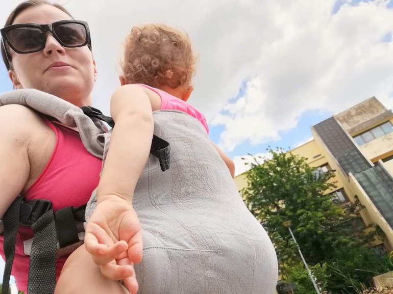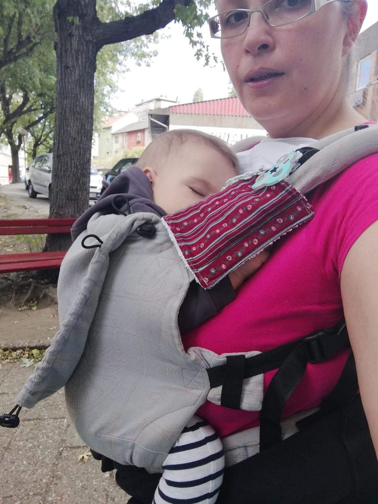 Thanks to Lenine putujuce nosiljke (Lena’s traveling carriers) we had an opportunity to rent and try this amazing carrier. The material is sooooo soft, and i love the color and pattern of this carrier. The carrier is very comfortable, and I think it would be perfect for summer hot days.