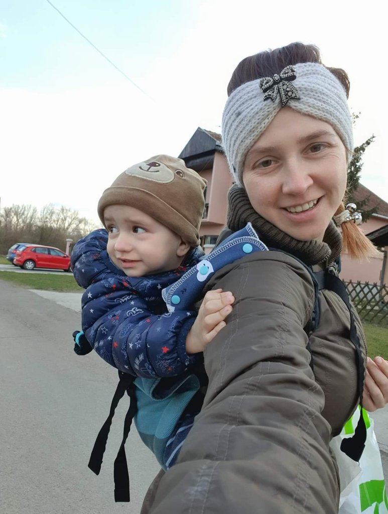 Thanks to Lenine putujuce nosiljke (Lena’s traveling carriers) and Freda we tested this lovely carrier for 5 days. My toddler is 20 months old and about 13, 5 kg at the moment of testing. This carrier is very soft and easy to set, excellent support for back but little uncomfortable on shoulders. My husband also enjoyed testing this carrier. 😊