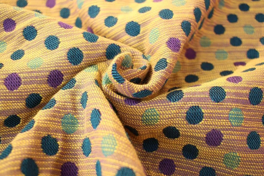 Yaro Slings RS Polka Dot Ultra Black Yellow Flame, size M arrived at the end of August. Before that we used elastic wrap, but it was to warm for both of us.