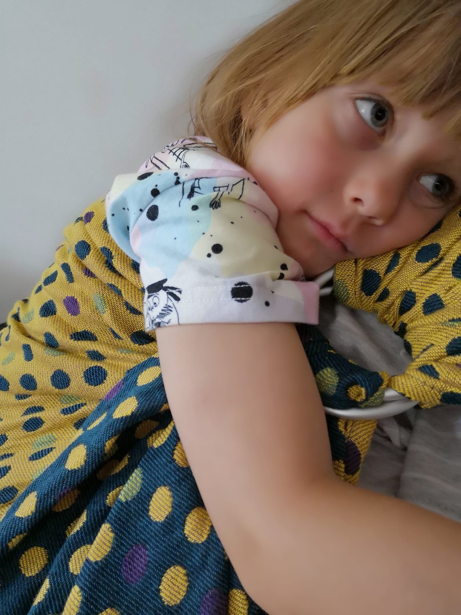 We had a pleasure to try this Polka Dot ring sling. Baby is 15months and round 11kg. Sling is soft but strong, and very beautiful and colorful. It was easy to wrap with and stays in place very well. It was very comfortable, but since we are at the end of our babywearing journey I’m sorry we didn’t use it as much as we should have and that I don’t have any good picture. Thanks Lenine putujuce nosiljke (Lena’s traveling carriers) for this opportunity 💗