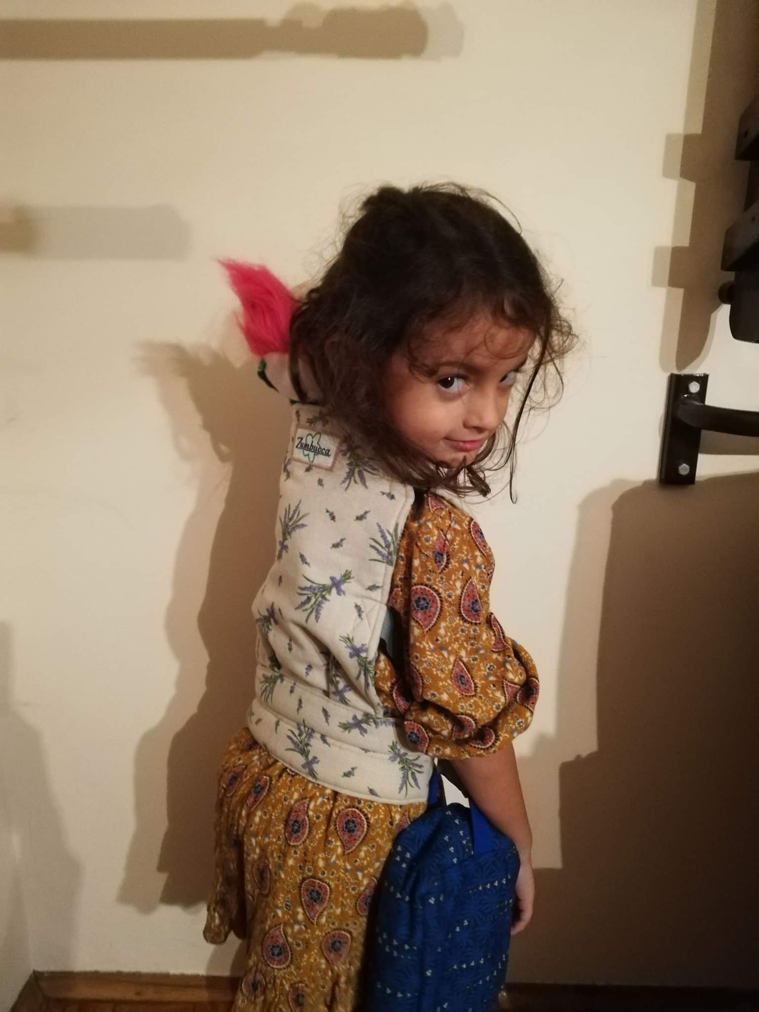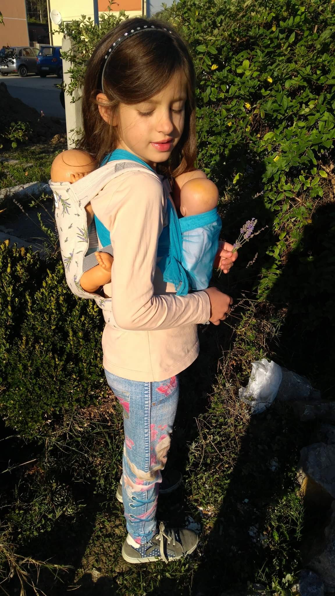 Helena (7,5) : “It is really comfortable for small and larger babies. I have carry my twins in tandem in front in wrap smaller baby and on back larger baby in buckle carrier. I like it, but I prefer still babywearing in wrap.