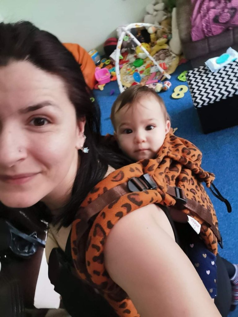 Thanks to Lenine putujuce nosiljke (Lena’s traveling carriers) we had opportunity to try this Zumbucca onbuhimo in so lovely animal pattern. It was first time we try this type of carrier, first time we saw the onbuhimo and we are happy it was this one. It was love at first sight, because it is so nice, so light and easy to make. But it is maybe quiet big for us, we wore with all the straps tightened but baby girl of 15 months still was deep in the onbuhimo. Material is very soft and pleasant and the animal print of the leopard is something i like so much. We would like if we would have some more opportunity to try this when baby girl is bigger and it will be maybe even better becouse the size. Thanks one more time to this lovely group #lenastravelingcarriers ❤ and #zumbucca ❤