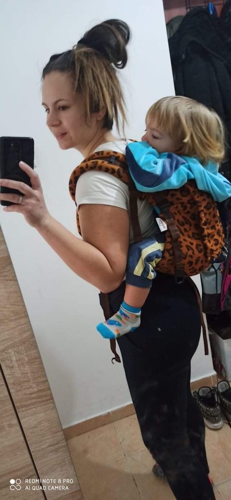 We tested Zumbucca onbuhimo. I like the pattern, animal print is interesting. Testee is 22months 12kg. This carrier is soft, the buckles are easily tightened, but I was unable to tighten them enough for the child to be as high as with other onbuhs. In contrast, my husband really likes it, and he is comfortable. He wore it more than I did during this test. Thanks to #Zumbucca and Lenine putujuce nosiljke (Lena’s traveling carriers)