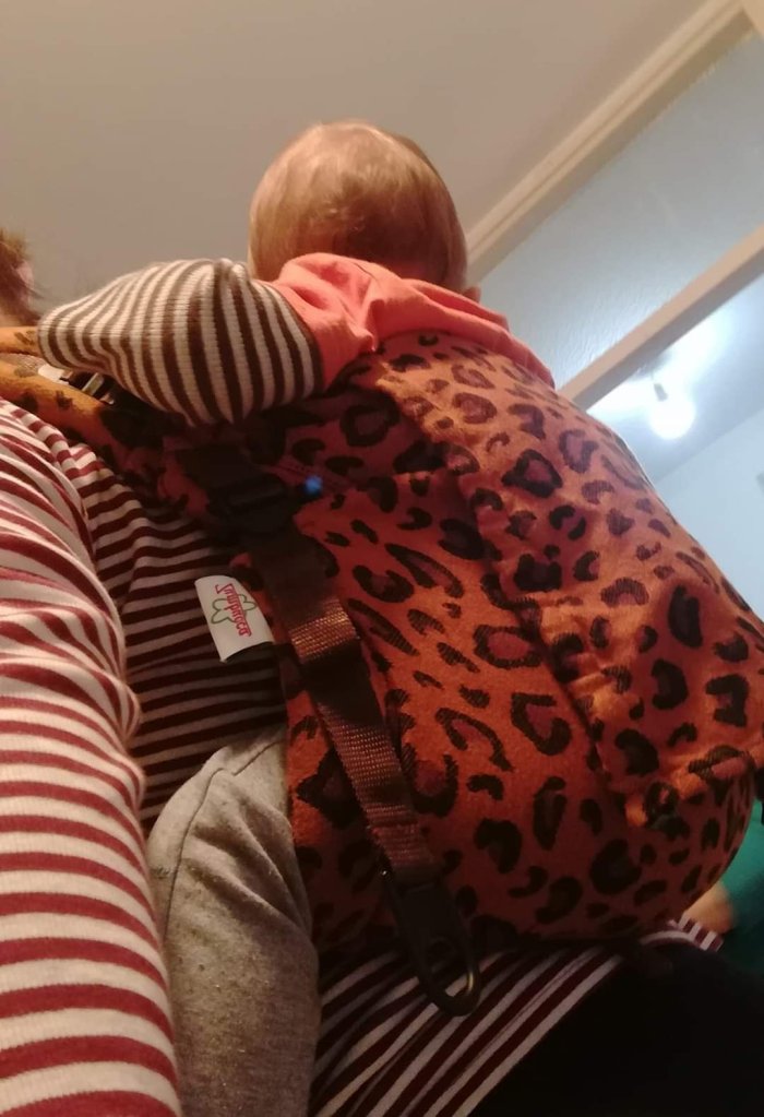 So sad having to say goodbye to this onbuhimo, I must say it is wonderful. My toddler (2,5 yo, 12,5 kg) really loved it and wanted to be carried exclusively in this carrier in the period of testing, naming it “tiger”. 😂 We obviously liked the leopard pattern, as well as my sister who was babywearing her older nephew for the first time, which is the reason I will always remember it. ❤ I also carried my younger boy (1yo, about 11 kg), but I felt more comfortable with my toddler, because I couldn’t reach the right height. The material is incredibly soft and the belts just like they have to be. Thank you #Zumbucca and #lenastravelingcarriers for this great opportunity! ❤