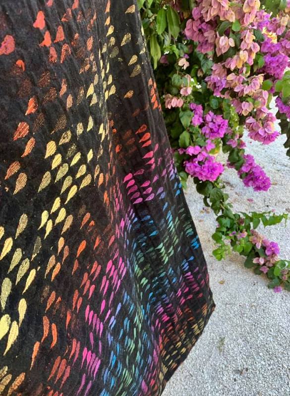 I love how this wrap looks, the pattern and vivid colors on black are nice! It’s a perfect winter wrap, only not for me.