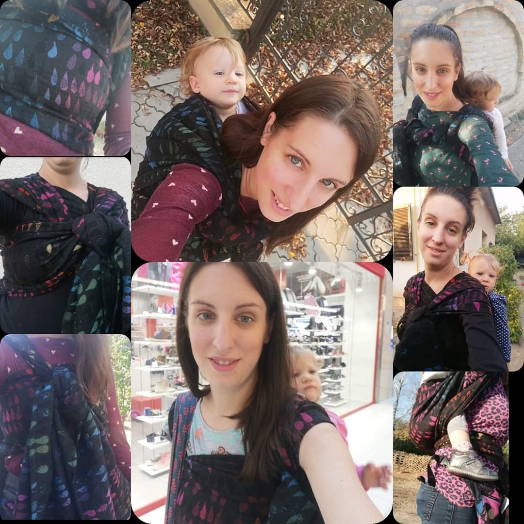 Lately I had the possibility to host a bombastic wrap – WW Drops of Jupiter (S4). Sorrily I had to let it go after a few days. Honestly, this wrap is the softest and cushiest I ever had to cuddle. Since my second child was born, I`m addicted to wool (because we use reusable diapers, wool diapers), I know the softness of Merino wool, but this beauty totally took me off my legs! How happy I would be to own one 1 day! 🙂 My boy was 20 months old and weighted between 12-13kg under the test period, with rapidly growing resistance against wrapping/carrying. Because of this reason, we had no chance to use the wrap very often, just for short walks in the apartment and outside, once a day. It`s butter soft, very supportive, without any itchiness…and the colors are Amazing!…perfect for newborns and for toddlers too…and perfect to fall totally in love with! Thank you very much for the opportunity Lenine putujuce nosiljke (Lena’s traveling carriers) and Woven Wings! 🙂