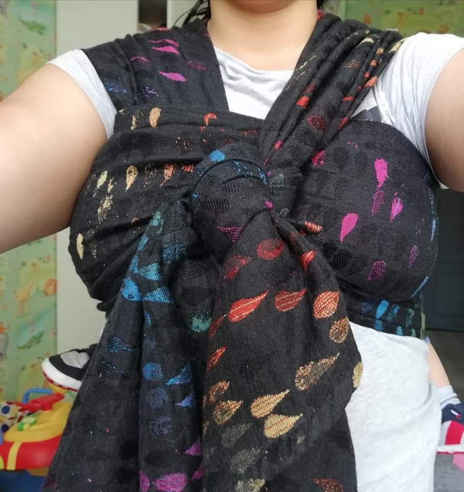 It was the first time I was able to tie a DH because it was so easy to put a layer over the layer. The weight on my shoulders was not feeling, and my boy fell asleep very quickly.