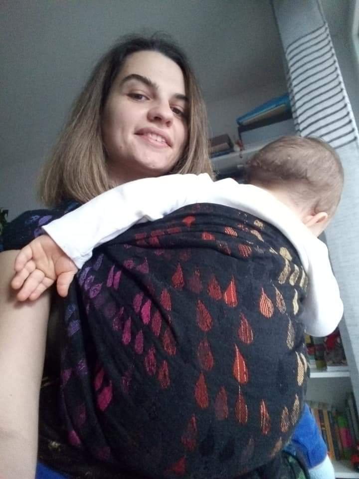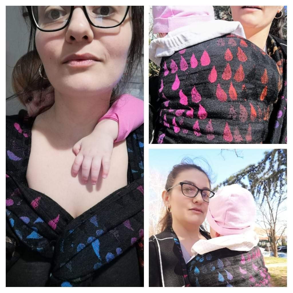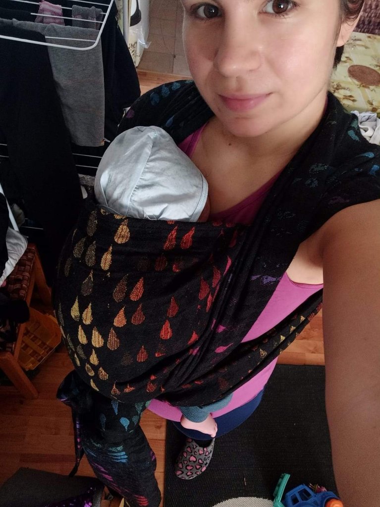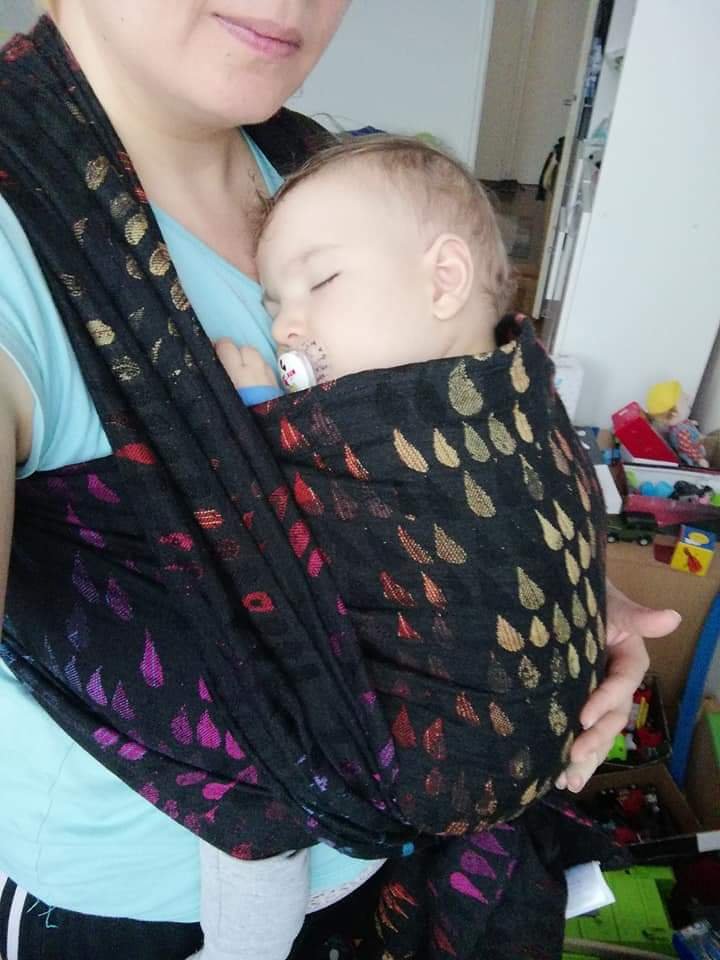 Thanks to Lenine putujuce nosiljke (Lena’s traveling carriers) I had great opportunity to finally try the famous Jupiter wrap. It was a size 4. I loved it in hands and colors are beautiful, but kinda didn’t feel that “spark” with it. Nonetheless I’m happy I tried it. 🖤