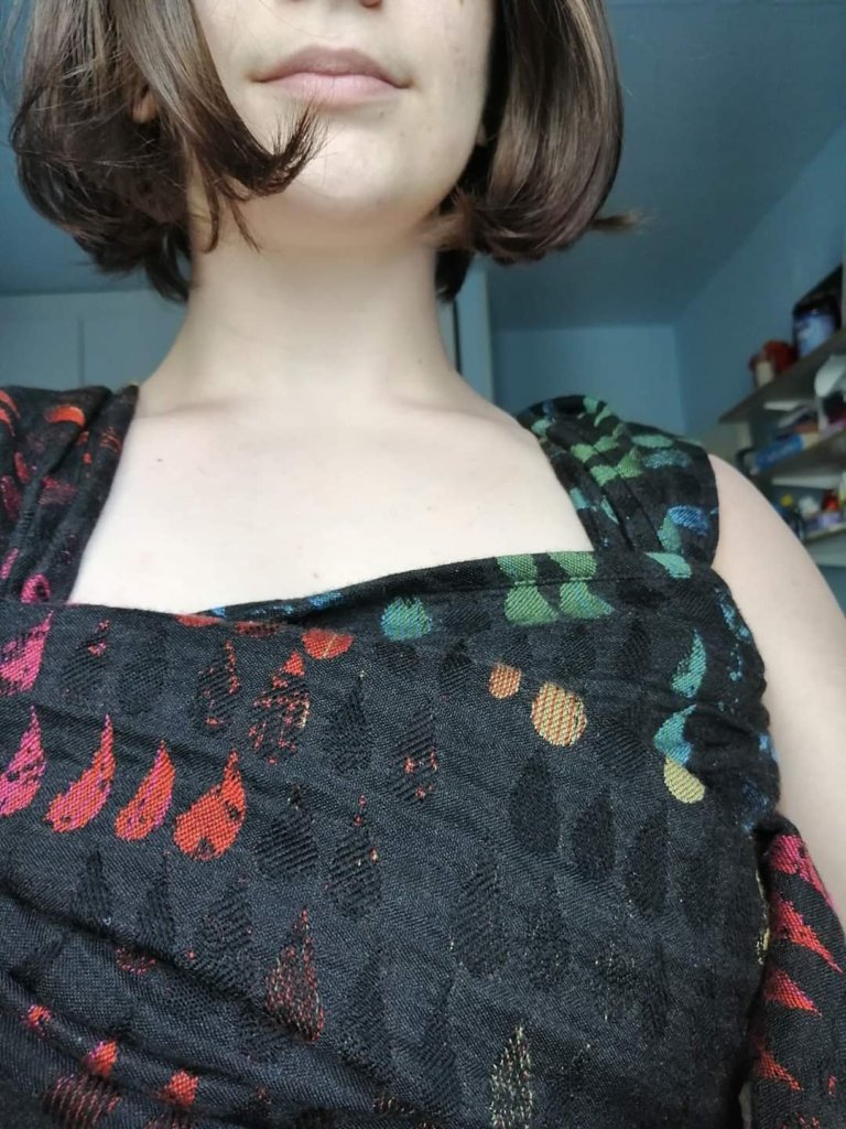 That was perfect opportunity to play with it more. When it arrived I had the feeling that even though it is soft that it needs more breaking in, just to become floppier. I’ve used some of the carries that require more tension on certain parts of wrap in order to break it in faster just by wearing. Suddenly the pockets popped even more, they are filled with air so the wrap is more breatheable and cushy.