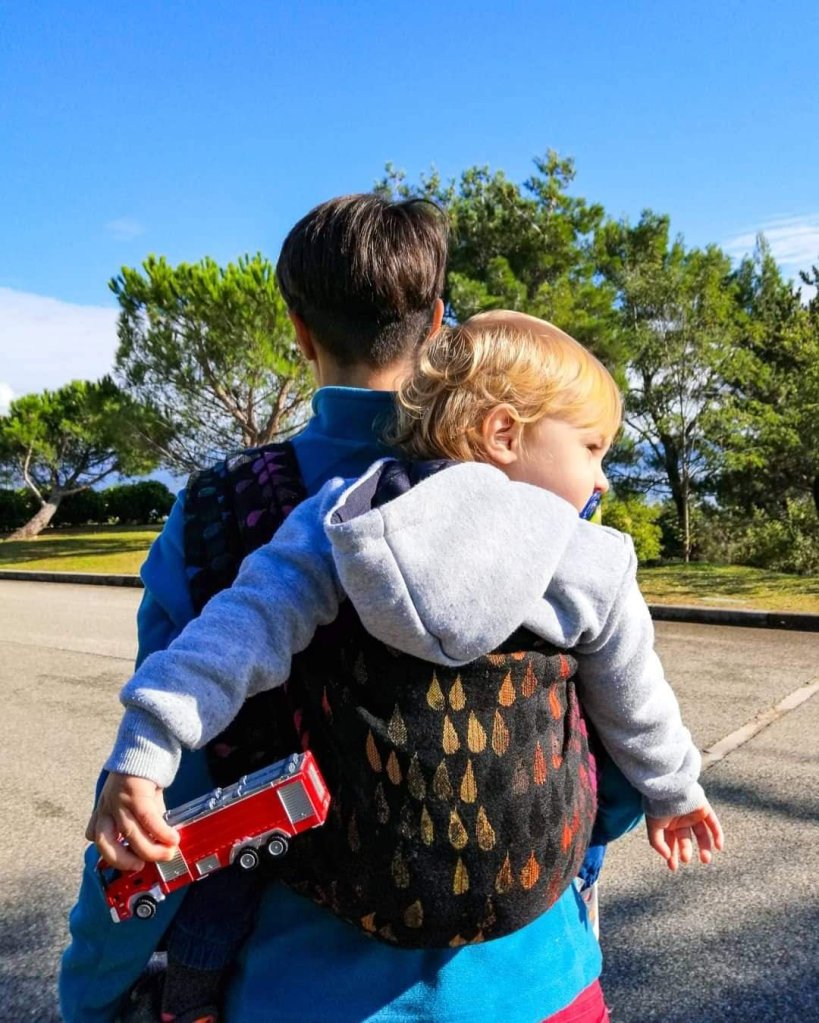 Thanks to lena’s traveling carriers I Had the oportunity and pleasure to try this beautiful wrap. At the first i Had doubt about wool, because i have very sensitive skin and Never could to wear anything with it. But! But this wrap Is so soft and gentil and not skratchy at all that i couldnt belive. At the time of testing, my baby Is 13kg, and 75cm (10 month old), and she doesnt want to be wearinig anymore 😔. And i m sad because of that. I succed to wrap her for a while to take a few pictures.