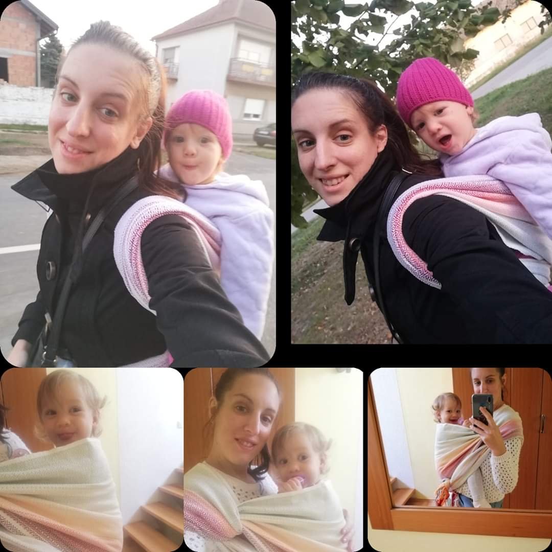 Many thanks to #leninetravelingcarriers Lenine putujuce nosiljke (Lena’s traveling carriers) and #vesnaltc who made it possible for us to try this beauty. When I first saw the wrap I spent almost half an hour just looking and touching it The material, design and weaving made me speechlest. The color combination is amazing. I have no right words to describe it. This was the first woven wrap I tried, I saw a comple of wraps at y friend’s but never dared to try them, as I though I was not going to make it. I was wrong. I still lack experience but practice makes perfect. I am short and I thought the length was going to be great, but I would prefer it to be a bit longer. The baby was thriled with the wrap. I feel sorry for not recording her reaction. She is 7.5kg and 69cm. I did not feel her weight at all. I carried her for more than an hour.