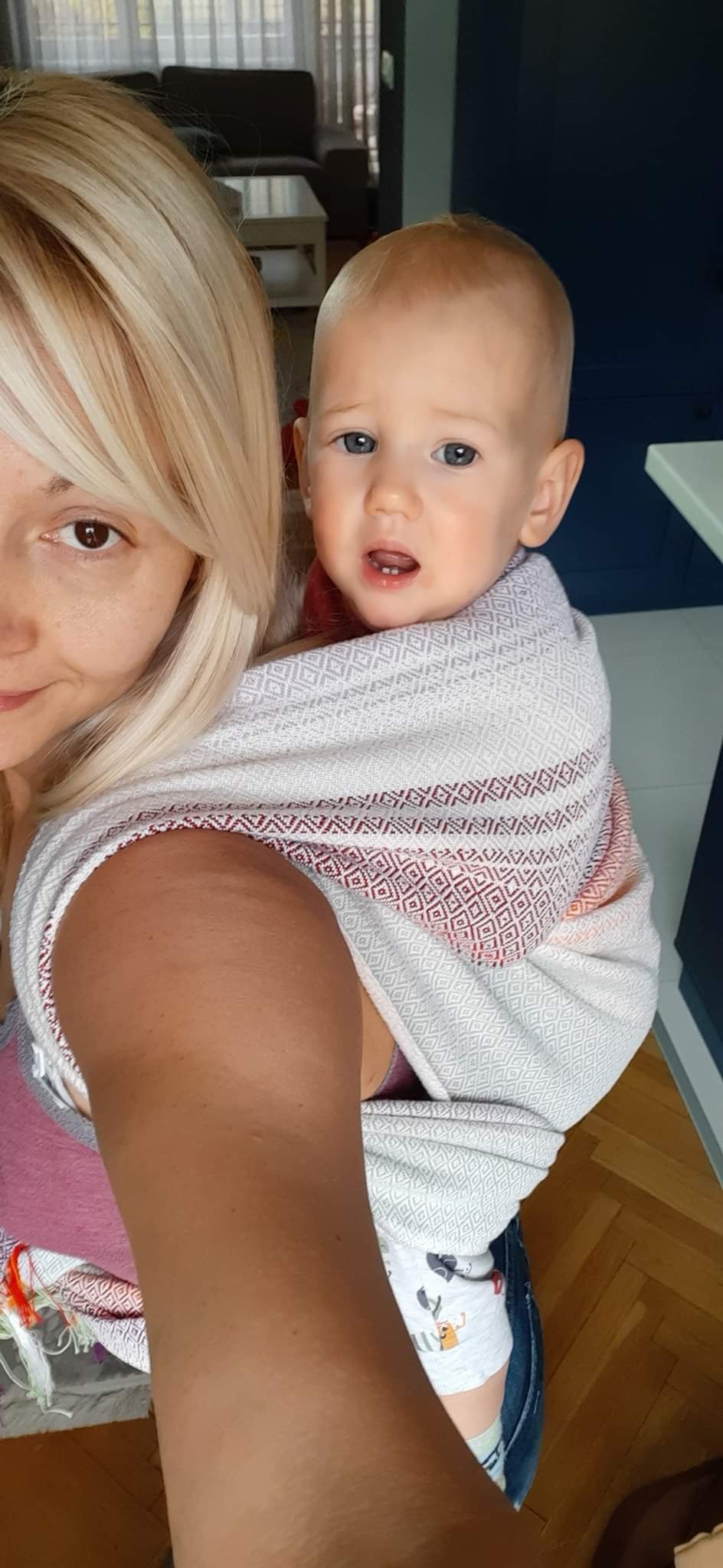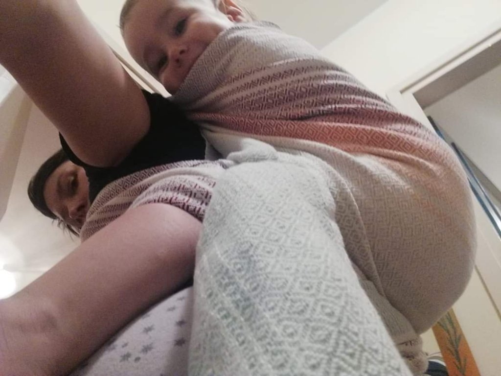 This lovely wrap (“On swallow wings”) by Vesna Djinovic is the first handwoven wrap I have ever seen. It’s totally different from the others I’ve tried. You can feel how much work is in it and of course, how much love! The colours are fantastic and the fabric is so soft and silky. Sorrily, lately my boy is totally against wrapping so I had no chance to tie very often and to try everything I would love to. It’s a pity, because this wrap deserves to be used and to be loved 24/7!😊💗 I hope I will have the chance to try it once more, if everything goes well, one day with my third child!