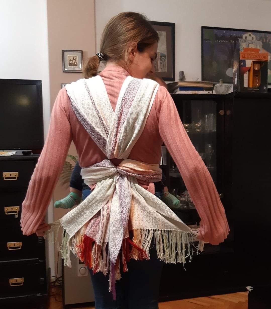 Thanks to our group, I had my first experience with handwoven wrap. It was made by our lovely babywearing mum Vesna who named it On Swallow Wings(size3) .