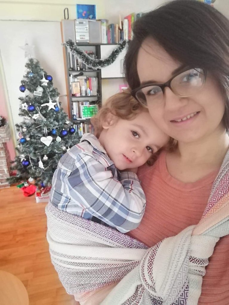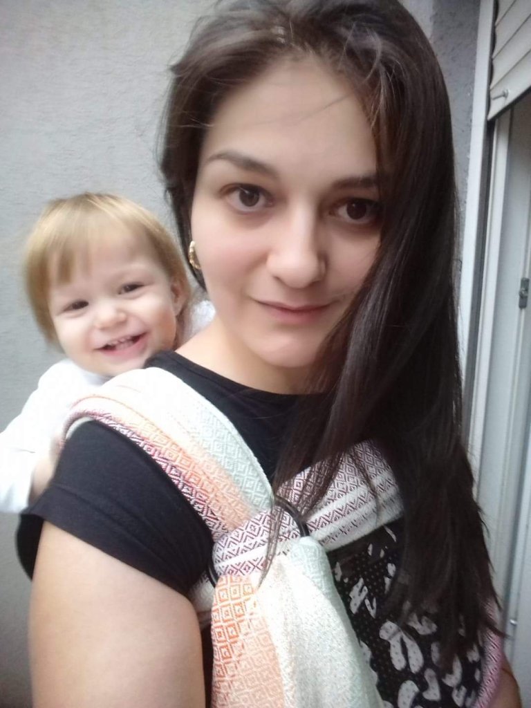 I am a RS girl, but I had to try this great wrap. Colours are souch a beautifull and my favorite blue heart is in the middle. I am really thankfull to Lena’s traveling carriers and our great mom Vesna Đinović for an opprortunity to test this amazing handwoven. This is one strong wrap, I can tell by weight of my children, son 3 an a half years old (14kg) and a girl 17 months old (9kg), that gives them a great hold. The only problem that I noticed with this wrap is its length. It was too short for me and I could not enjoy much, but I am very interested for new Vesna’s projects. ❤️