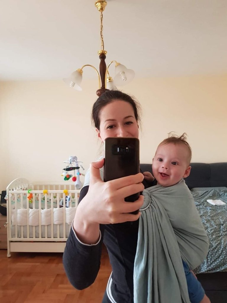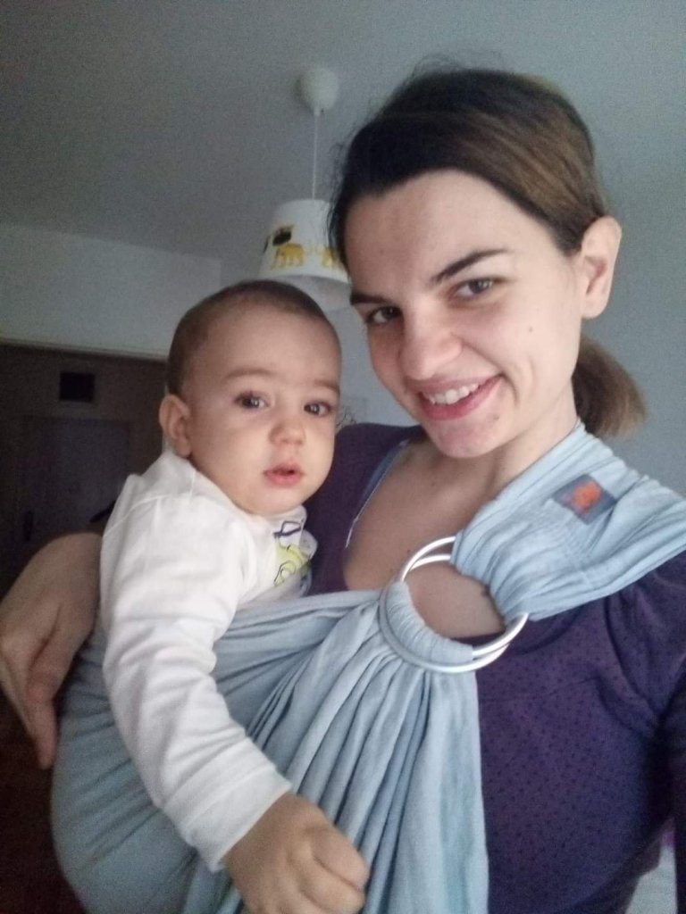 Thanks to Lenine putujuce nosiljke (Lena’s traveling carriers) and its admins that I was adviced by, I had an opportunity to try this adorable ring sling. Even though this was my first rs, I completely enjoyed in it. Gentle fabric, but firm enough, light baby colour, easy to adjust – made me feel like I have been using it long time ago. Baby testers were 6 months old (prematured tweens’ born 1.5 months earlier) and about 8kg. We used it more for my.boy baby since he enjoyed it more than his sister – clearly demonstrating that loudly crying every time we stopped wearing. 😐 No matter rs are usually used when the weather is nice, we.used it even during cold.days (with proper cover). Only my older daughter wasn’t happy since she couldn’t have been taken in this comfortable rs. Thanks #lenastravelingcarriers #nashslingltc