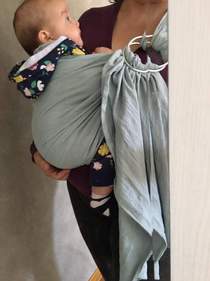 This Ring sling is very comfortable because the material is very thin and I think is perfect for summer. My baby have 5 months and 9kg and we are wearing in the house because he is a hard to carry in long walks. But he love it and thankfully is very still in this Ring sling. Thanks to #lenastravelingcarriers and #nashsling because they are here for us!