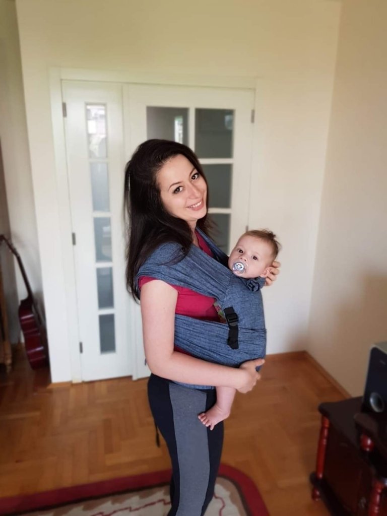 Thanks to Lenine putujuce nosiljke (Lena’s traveling carriers) we had the opportunity to test Nashsling Mei Tai(Mei Dai) Jeans. I loved the color and the design of this mei tai, and the material is light and thin, perfect for summer in my opinion. Unfortunately, for me it was not very comfortable, maybe due to the fact that the straps do not have any stuffing. I think it would be better for smaller babies. Also, my baby would get impatient when I would try to adjust everything perfectly. The waist belt is comfortable, and I like the fact that the panel is adjusted with buttons. At the time of testing, my baby was 14 moths old and around 9,5kg.