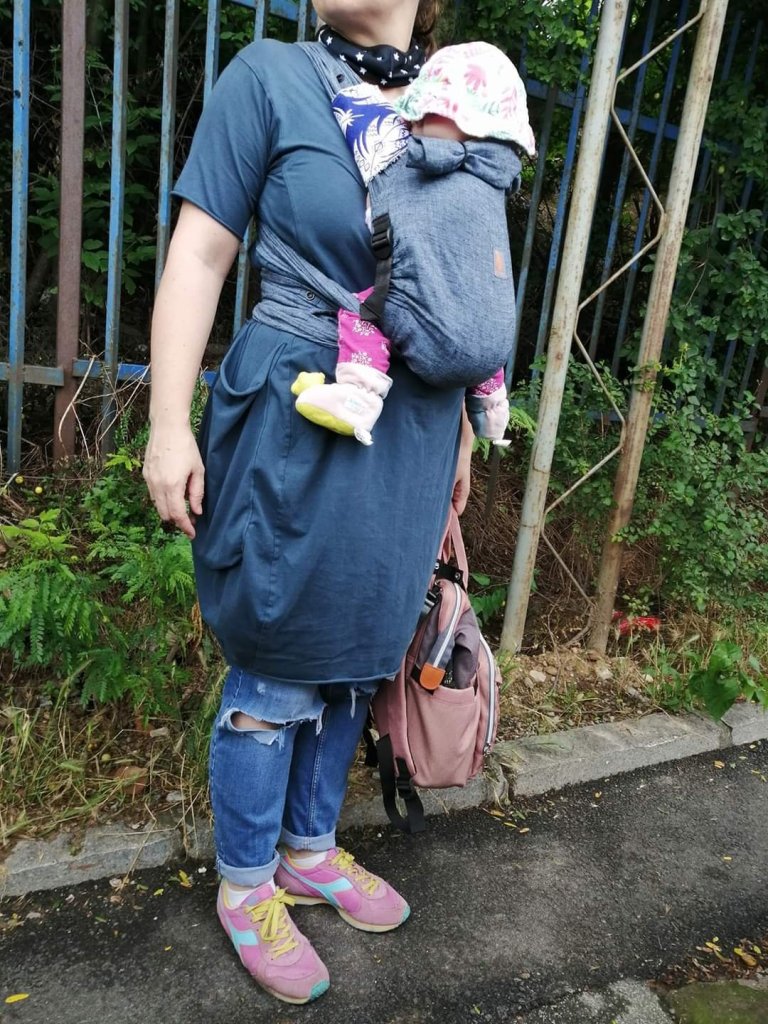 Thanks to #lenastravelingcarriers and #nashslingltc we had an opportunity to test Nashsling Mei Tai jeans. The tester is 4,5 months old, 62cm and 6,2kg. I am not that experienced babywearer and this is the first mei tai I tried but it was fairly easy to adjust it. The colour is nice and it matches everything, and what I liked the most is that it’s very light and can fit in any bag. The fabric is thin and perfect for summer, but I think it’s too big for us now. The baby wants to see the world outside but can stick out only half of her head, and she is not too keen to keep her hands inside too. She wrestled for a little bit but she gave up after 10min and fell asleep, and continued sleeping for the entire walk so I guess she liked it after all. I also think that padded shoulder straps would be a better idea, but it wasn’t that uncomfortable: we walked for an hour. I just think that we would be a better match in a few months.
