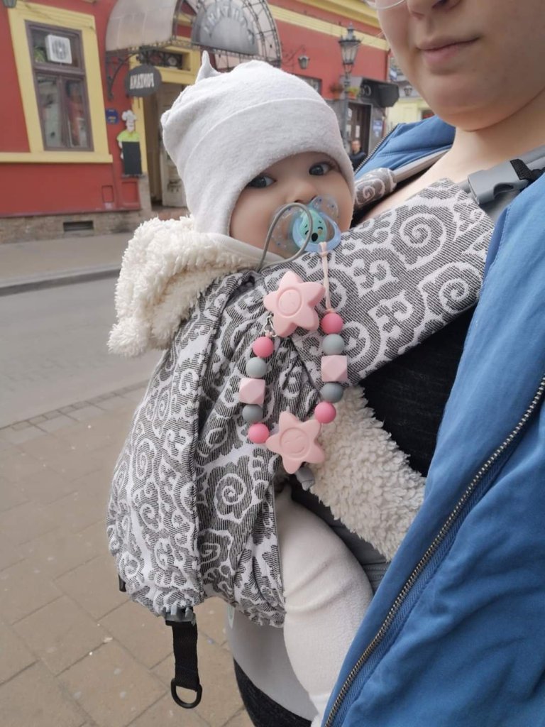 We liked double belt & closure system and beautiful, soft fabric. It was our second carrier, but it was very easy to set up, in just a few simple steps. This was very interesting experience for both of us: my husband (196 cm/ 120 kg) and me (168 cm/70 kg).