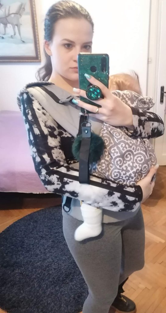 We tested Aloe sling carrier, baby size. Carrier is great for back, have extra belt, so I haven’t felt any weight of my baby. Fabric is very nice and design is beautiful. My baby is 6 months old, have 9 kg and 70 cm, so it was a little bit tight for us, but for small babies it is excellent. 🙂