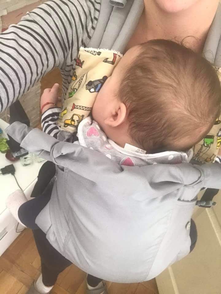Thanks to Lenine putujuce nosiljke (Lena’s traveling carriers) and Aloe Slings we had the opportunity to test Aloe Simply “K+”. Our tester is a girl, 11 months old, weighing around 8.7kg. I usually try every carrier my wife receives for testing, just to try it out. I did so this time, too. I immediately noticed a difference. As if it was designed for men. It’s a no nonsense carrier. There’s not much fluff and padding in it. The design is simple. This one had one color – gray. Straps and buckles were black. All the colour a man needs, really. It has double belts around the waist. Straps over the shoulder are wide. If you mount them across your back the carrier is ultra comfortable. Your entire upper back is carrying the weight, it’s not pulling your shoulders front. With the huge straps around your waist – you practically don’t feel the weight. The baby fell asleep almost immediately. We were outside for more than an hour – didn’t feel a thing. I can really recommend this one, it’s different.