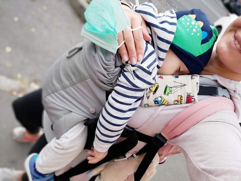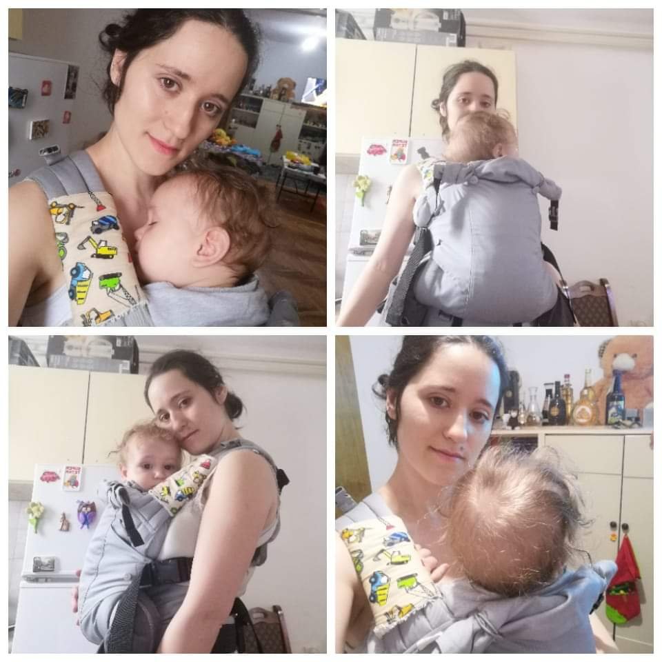 Thanks to Lenine putujuce nosiljke (Lena’s traveling carriers) we were able to enjoy babywearring and try something new. When I first saw the carrier, the wide belt drew my attention, so I could not wait to try it on. At the time of testing, the baby tester was 69cm, 9kg and had 7 months. It left me speachless. I could not feel the baby’s weight. I carried her indoors and outdoors for 2 hours, and literaly did not feel her. My older som a;so wamted to be carried, and I had to convince him otherwise, but my younger son insisted so much, I had to carry him. I carried my younger son for half an hous, and did not feel his weight either. He is 13kg and 3.5 yeard old. The carrier is realy amazing, practical, and comfortable. I could not feel the baby’s nor the older child’s weight.