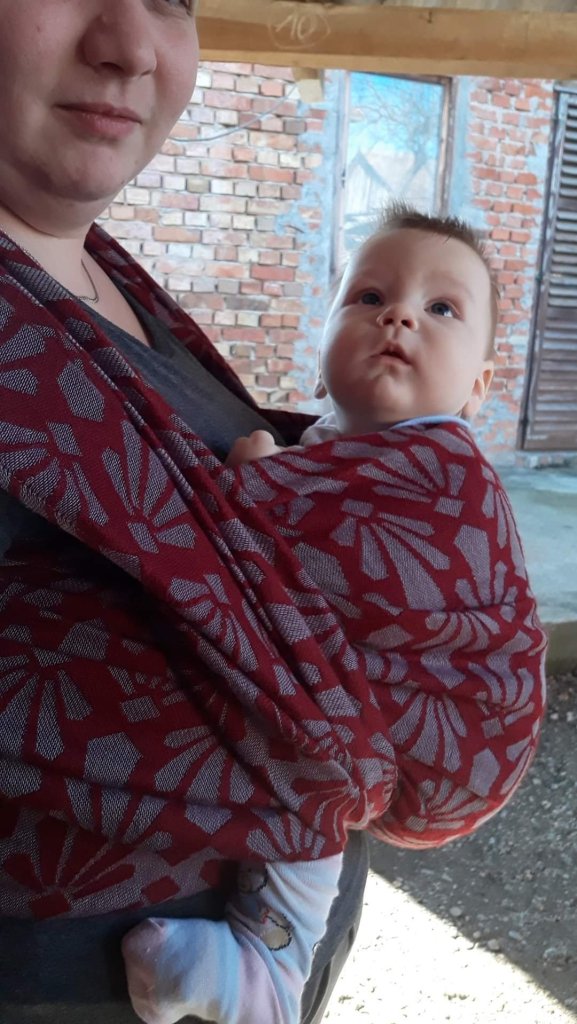 Thanks to Lenine putujuce nosiljke (Lena’s traveling carriers) we had the oportunitty to test Elirile Crystallo Royal in size 6. The wrap is beautiful, soft and easy to wrap. The baby is 10 months old and has 9kg. I did not feel her weight, though it was a bit hot for us. It can be that this wrap is more suitable for colder weather and more experienced moms. I would however recommend it to everyone due to its softnes and moldness.