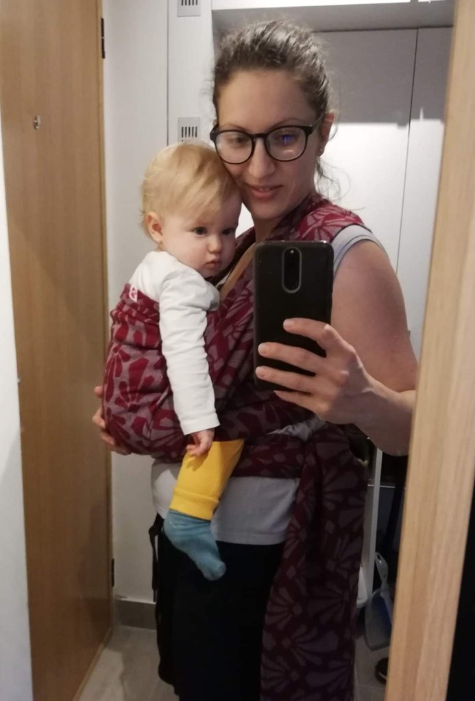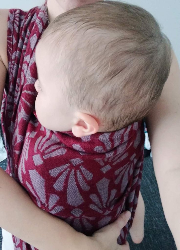 Thanks to #lenastravelingcarriers and #ElirileLTC I had the opportunity to try out this wrap Elirile Cristalo royal – baby alpaca cotton and silk, size 6 . Our baby is 11 months old and weighs around 9 kg. It is the softest wrap I ever tried but at the same time it doesn’t stretch, a real toddler prison wrap. It wraps and tightens effortlessly. There is a small, miniscule “but” – the wool is bit prickly. If you’re not wool in direct contact with your skin doesn’t bother you – then this is a wrap for you.