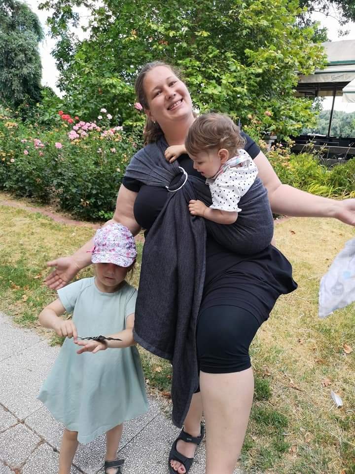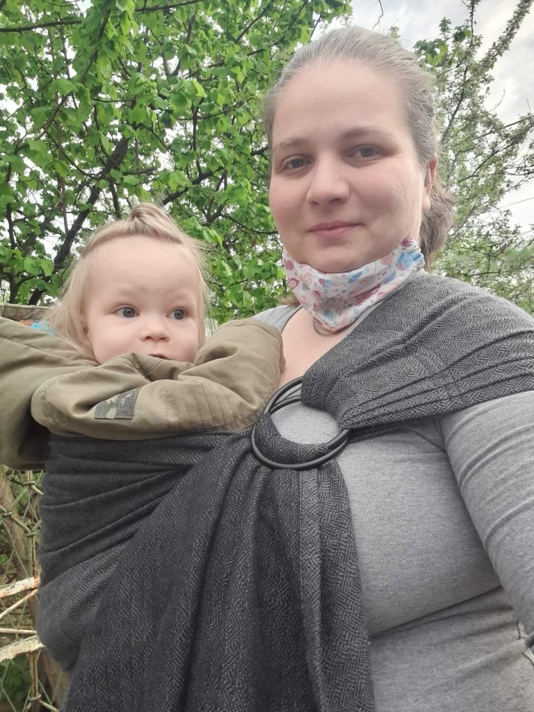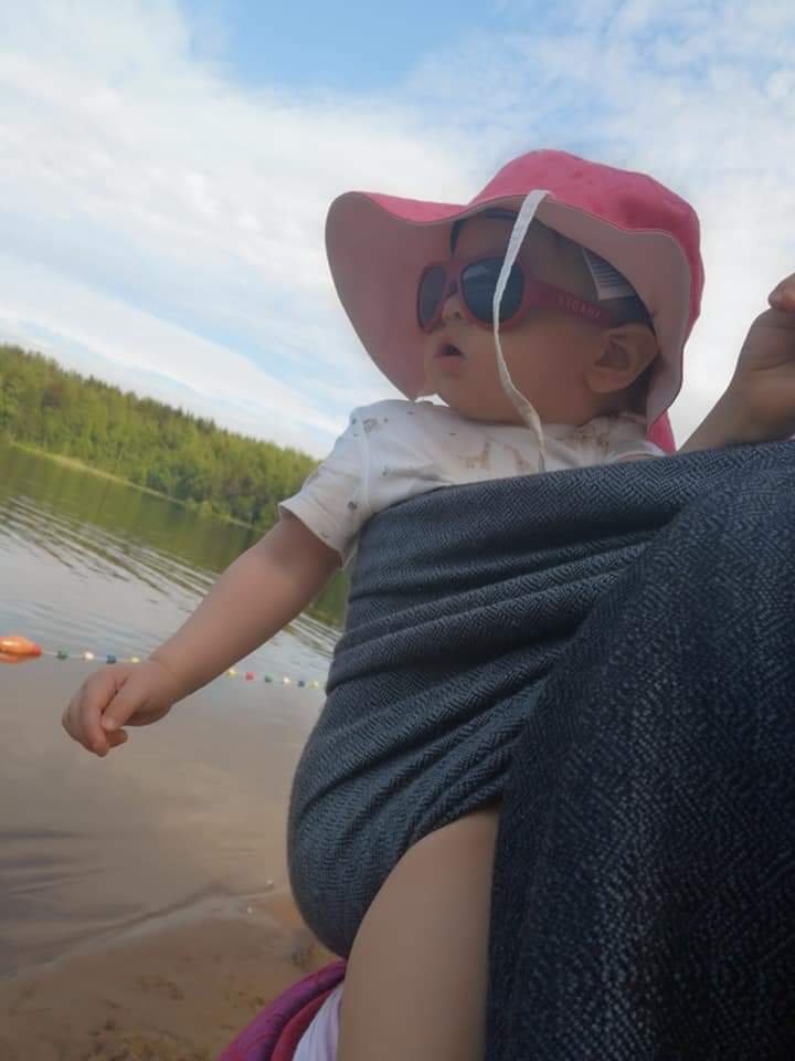 Thanks to the Lenine putujuce nosiljke (Lena’s traveling carriers) we had the opportunity to try the Vanamo sling and I can say that it is perfect. It is very soft, pleasant, easily slides through rings, holds the baby nicely and is comfortable on the shoulder. I also really like the design of the fabric and the way of weaving. My baby is 8.5 months old and 9kg and I did not feel her weight. We hung out with this beauty for only a few days, but she immediately grew close to our hearts, so we hope that there will be another opportunity to hang out.