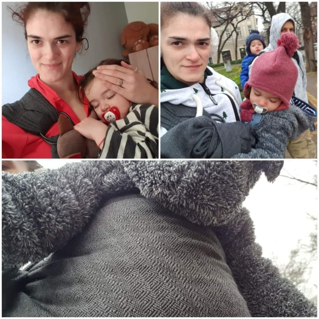 Thanks to the Lenine putujuce nosiljke (Lena’s traveling carriers) I had the opportunity to try the vanamo sling and I can say that it is the best I have tried so far. It is so soft and easy to adjust and I believe it is because it contains merino wool. The color could have been brighter but for these gloomy days it fits. My baby is 7 months old < and 7.5kg and for the first time I set it up without any difficulty. I’m sorry that we didn’t have the opportunity to hang out with the sling a bit more, but I’m extremely glad that I had the opportunity to try it at all.
