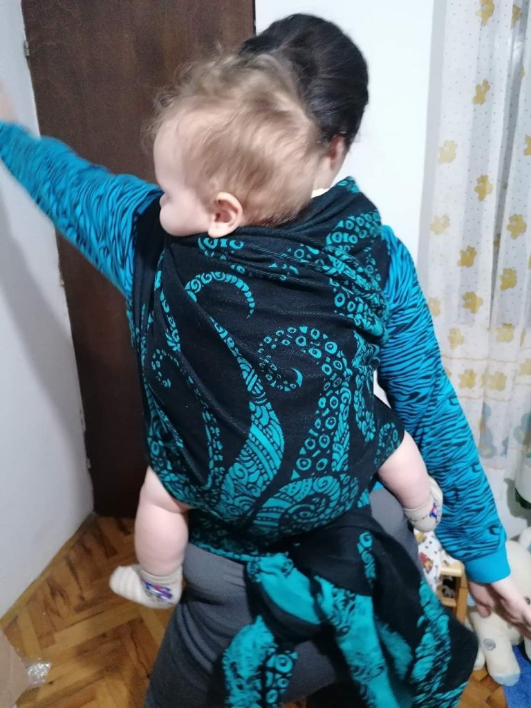 Thanks to Lenine putujuce nosiljke (Lena’s traveling carriers) I have that pleasure to try and enjoy in Woven Wraps – Luluna Kraken Lazure Depth 6 size.